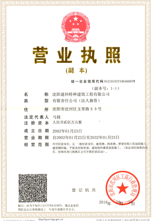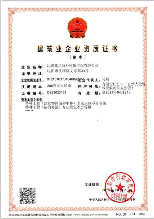 隸屬沈陽市建設(shè)工程質(zhì)量檢測中心有限公司,是沈陽市最早成立的國有建筑結(jié)構(gòu)加固公司之一。公司主要經(jīng)營:建筑物、構(gòu)筑物、橋梁結(jié)構(gòu)工程加固施工;建筑物糾偏、平移及結(jié)構(gòu)補強;建筑構(gòu)件灌漿連接施工等,于2002年1月23日在沈陽工商局注冊,公司注冊資本人民幣200(萬元),公司辦公地址位于沈陽市沈河區(qū)文萃路33號,在職員工25人,公司成立以來,先后承擔了遼寧省及沈陽市的大型工程改造及加固施工工程。