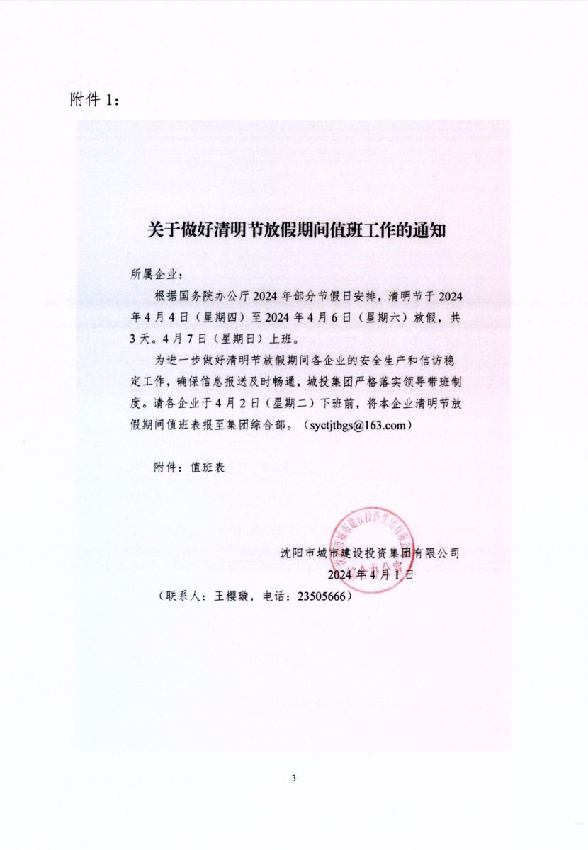關(guān)于做好2024年清明節(jié)放假期間值班工作的通知